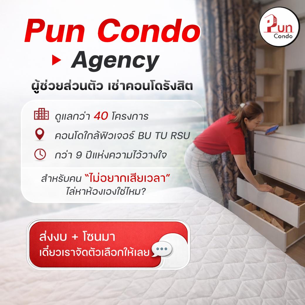 Pun Condo ผู้ช่วยส่วนตัว ซื้อ ขาย เช่า คอนโดย่านรังสิต เราดูแลคอนโดกว่า 40 โครงการในย่านรังสิต ใกล้ฟิวเจอร์ ม.กรุงเทพ ธรรมศาสตร์ ม.รังสิต
