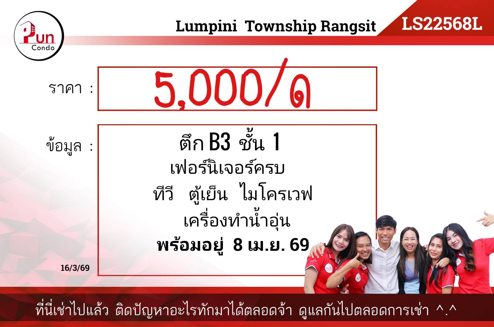 🏡เฟอร์นิเจอร์ครบ 🏡เครื่องใช้ไฟฟ้า แอร์ / ทีวี / ตู้เย็น / ไมโครเวฟ/ เครื่องทำน้ำอุ่น/ พร้อมอยู่ 5 เม.ย. 69