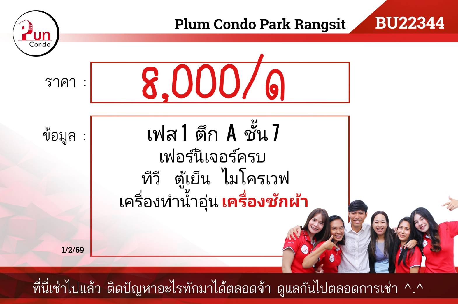 พลัม คอนโด พาร์ค รังสิต - Bu22344