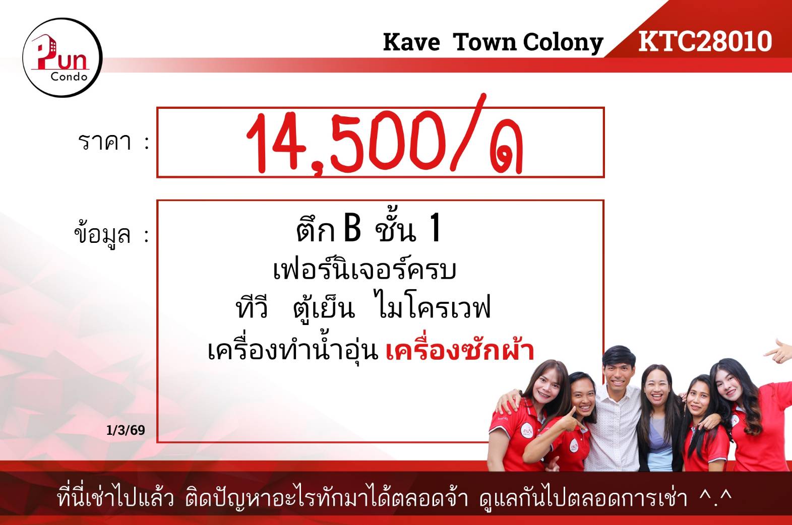 📌 เฟอร์นิเจอร์ครบ 📌เครื่องใช้ไฟฟ้า มีแอร์ / ทีวี / ตู้เย็น / ไมโครเวฟ / เครื่องทำน้ำอุ่น/เครื่องซักผ้า